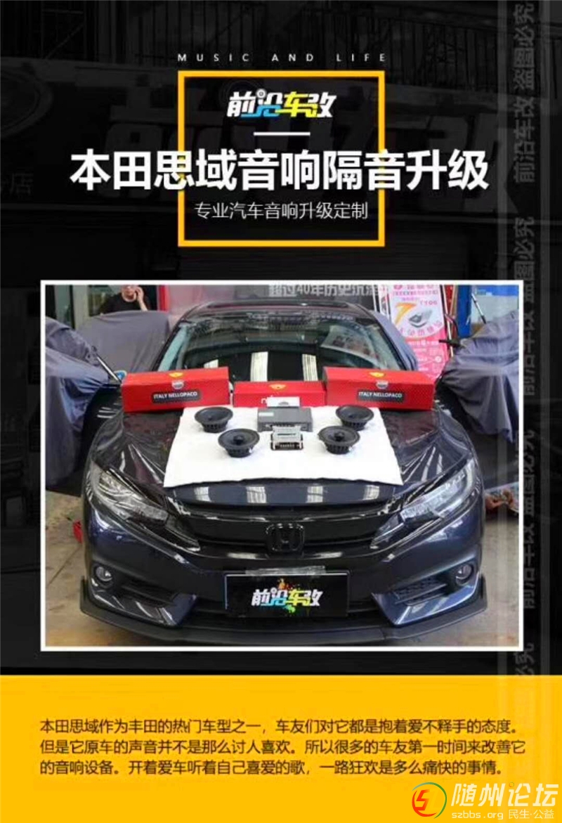隨州前沿車改本田思域音響隔音升級