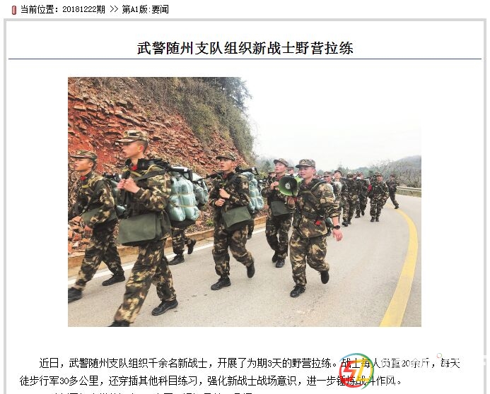 【報刊圖片】 武警隨州支隊組織千余名新戰(zhàn)士開展為期3天的野營拉練