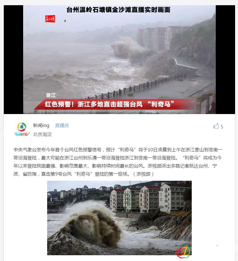 中央氣象臺(tái)氣象專家介紹,臺(tái)風(fēng)“利奇馬”具有登陸強(qiáng)度強(qiáng)、風(fēng)雨強(qiáng)度大、持續(xù)時(shí)間長(zhǎng)、影響范圍廣等特點(diǎn)。除了臺(tái)風(fēng)本身帶來(lái)的強(qiáng)風(fēng)雨,10日以后和冷空氣結(jié)合,風(fēng)雨影響和波及面都很大。 今年第9號(hào)臺(tái)風(fēng)“利奇馬”已經(jīng)升級(jí)為“超強(qiáng)臺(tái)風(fēng)”,預(yù)計(jì)將于10日早晨到中午在浙江沿海登陸。登陸后,“利奇馬”將轉(zhuǎn)向偏北方向移動(dòng),強(qiáng)度逐漸減弱?!袄骜R”將成為近年來(lái)登陸我國(guó)最強(qiáng)的臺(tái)風(fēng)。 中央氣象臺(tái)8月8日18時(shí)繼續(xù)發(fā)布臺(tái)風(fēng)橙色預(yù)警和暴雨藍(lán)色預(yù)警,浙江東南部和臺(tái)灣島的部分地區(qū)有大暴雨或特大暴雨,北方地區(qū)也將有較強(qiáng)降水過程。 中心經(jīng)過海域陣風(fēng)超17級(jí) 8日17時(shí),“利奇馬”的中心位于浙江省溫嶺市東南方大約630公里的臺(tái)灣以東洋面上,中心附近最大風(fēng)力有17級(jí)(58米/秒),十二級(jí)風(fēng)圈半徑60公里。預(yù)計(jì)“利奇馬”將以每小時(shí)20公里左右的速度向西北方向移動(dòng),9日凌晨移入東海東南部海域,然后逐漸向浙江沿海靠近,并將于10日早晨到中午在浙江沿海登陸(強(qiáng)臺(tái)風(fēng)級(jí),14-15級(jí),42-48米/秒)。登陸后,“利奇馬”將轉(zhuǎn)向偏北方向移動(dòng),強(qiáng)度逐漸減弱。 大風(fēng)預(yù)報(bào)顯示,8日20時(shí)至9日20時(shí),南海東北部偏東海域、巴士海峽、臺(tái)灣海峽、臺(tái)灣以東洋面、東海大部、釣魚島附近海域、長(zhǎng)江口區(qū)、杭州灣以及臺(tái)灣島沿海、福建沿海、浙江沿海、上海沿海、江蘇南部沿海將有6-8級(jí)大風(fēng),其中,臺(tái)灣島東部和北部沿海、臺(tái)灣以東洋面、東海南部海域的風(fēng)力有9-12級(jí),“利奇馬”中心經(jīng)過的附近海域的風(fēng)力可達(dá)13-17級(jí),陣風(fēng)17級(jí)以上。 中國(guó)天氣網(wǎng)介紹,8日17時(shí),“利奇馬”中心風(fēng)力達(dá)58米/秒,中心氣壓920百帕,已超過今年2號(hào)臺(tái)風(fēng)“蝴蝶”,成為今年“風(fēng)王”。 臺(tái)風(fēng)“羅莎”對(duì)我國(guó)海域無(wú)影響 另外,今年第10號(hào)臺(tái)風(fēng)“羅莎”昨日下午加強(qiáng)為強(qiáng)臺(tái)風(fēng)級(jí)。17時(shí),其中心位于美國(guó)關(guān)島北偏西方向大約1060公里的西北太平洋洋面上,中心附近最大風(fēng)力有14級(jí)(42米/秒),中心最低氣壓為955百帕,七級(jí)風(fēng)圈半徑280-380公里。 預(yù)計(jì)“羅莎”將以每小時(shí)5-10公里左右的速度向東北方向移動(dòng),10日后逐漸轉(zhuǎn)向西北方向移動(dòng),強(qiáng)度變化不大,未來(lái)趨向日本南部,對(duì)我國(guó)海域無(wú)影響。 應(yīng)對(duì) 國(guó)家防總派工作組協(xié)助防汛 此次臺(tái)風(fēng)風(fēng)力強(qiáng),風(fēng)浪高,影響范圍大,降雨強(qiáng)度大,防汛抗洪防臺(tái)風(fēng)形勢(shì)嚴(yán)峻。8日上午,國(guó)家防總召開防御第9號(hào)臺(tái)風(fēng)“利奇馬”視頻會(huì),對(duì)防御工作做出進(jìn)一步的安排部署。國(guó)家防總啟動(dòng)防汛防臺(tái)風(fēng)三級(jí)應(yīng)急響應(yīng),并派出工作組,協(xié)助地方開展防臺(tái)防汛工作。國(guó)家防總要求相關(guān)地方各級(jí)防指要按照防汛防臺(tái)風(fēng)預(yù)案和各地實(shí)際,進(jìn)一步加強(qiáng)組織領(lǐng)導(dǎo),嚴(yán)格落實(shí)責(zé)任,及時(shí)啟動(dòng)應(yīng)急響應(yīng),提前預(yù)置隊(duì)伍力量,扎實(shí)做好各項(xiàng)防御工作,確保人民群眾生命安全,最大程度減輕災(zāi)害損失。 此外,海浪實(shí)況顯示,東海的浪高已經(jīng)開始逐漸增大。國(guó)家海洋預(yù)報(bào)臺(tái)8日下午發(fā)布海浪紅色警報(bào),預(yù)計(jì)8月8日夜間到9日白天,東海南部、釣魚島附近海域?qū)⒊霈F(xiàn)7到13米的狂浪到狂濤區(qū),東海北部將出現(xiàn)4到6米的巨浪到狂浪區(qū),近海海浪預(yù)警級(jí)別為橙色;浙江近岸海域?qū)⒊霈F(xiàn)4到6米的巨浪到狂浪,預(yù)警級(jí)別達(dá)到紅色。 同時(shí),臺(tái)風(fēng)“利奇馬”還將給沿海帶來(lái)一次較大的臺(tái)風(fēng)風(fēng)暴潮過程。9日下午到10日下午,嚴(yán)重影響寧波至臺(tái)州一帶登陸地附近沿海;10日下午到11日下午,嚴(yán)重影響岸段為長(zhǎng)江口至杭州灣沿海。國(guó)家海洋預(yù)報(bào)臺(tái)8日下午發(fā)布第一期風(fēng)暴潮藍(lán)色警報(bào)。預(yù)計(jì)9日白天,杭州灣到福建福州沿海將出現(xiàn)50到120厘米的風(fēng)暴增水,不會(huì)出現(xiàn)達(dá)到當(dāng)?shù)厮{(lán)色警戒潮位的高潮位。 解讀1 臺(tái)風(fēng)“利奇馬”影響范圍有多大? 從臺(tái)灣到遼寧,10省市將受到直接影響 中央氣象臺(tái)氣象專家介紹,臺(tái)風(fēng)“利奇馬”具有登陸強(qiáng)度強(qiáng)、風(fēng)雨強(qiáng)度大、持續(xù)時(shí)間長(zhǎng)、影響范圍廣等特點(diǎn)?!袄骜R”未來(lái)登陸我國(guó)后并不會(huì)深入內(nèi)陸,強(qiáng)度減弱慢,比較有利于維持臺(tái)風(fēng)環(huán)流,一路北上預(yù)計(jì)會(huì)給我國(guó)帶來(lái)長(zhǎng)時(shí)間風(fēng)雨影響。 在影響范圍方面,預(yù)計(jì)8