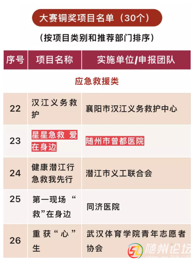 近日,省委宣傳部、省文明辦、團(tuán)省委等共同舉辦的2022年湖北省志愿服務(wù)項(xiàng)目大賽結(jié)果公示,隨州市曾都醫(yī)院“星星急救 愛在身邊”急救知識技能普及志愿服務(wù)項(xiàng)目榮獲2022年湖北新時代文明實(shí)踐志愿服務(wù)項(xiàng)目大 ...