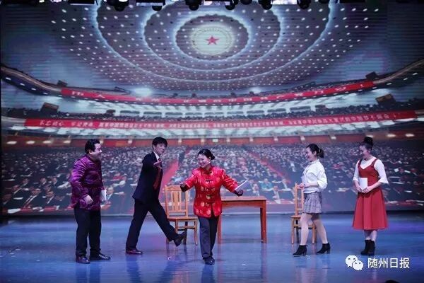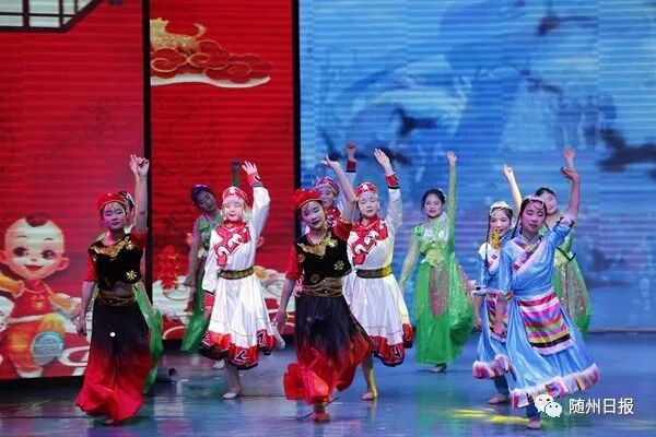 ' I. L7 F+ ?! d5 {7 t2 K0 o此次晚會是由隨州花鼓劇院自編、自導、自演的一場戲曲晚會,演職人員中年紀最大的為70多歲的編劇李永朝老師,年齡最小的是七八歲的小學生。新老傳承、演繹,展現(xiàn)隨州花鼓劇的魅力。晚會分春滿曾都、不忘初心、復興之夢三個樂章。 1 |/ s) k) U% {: w, r" ]& l u