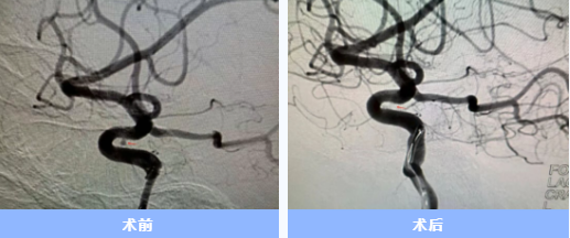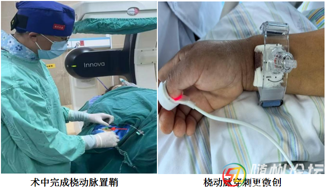 手術(shù)當(dāng)天,胡蘇華與主治醫(yī)師陳浩協(xié)作,首先經(jīng)患者右手橈動(dòng)脈成功建立治療通道,隨后才實(shí)施全身麻醉,以最大限度縮短麻醉時(shí)間。憑借精湛技藝,團(tuán)隊(duì)迅速而完整地栓塞了動(dòng)脈瘤。術(shù)后患者很快在ICU蘇醒,四肢活動(dòng)良好,第二天即返回普通病房。
