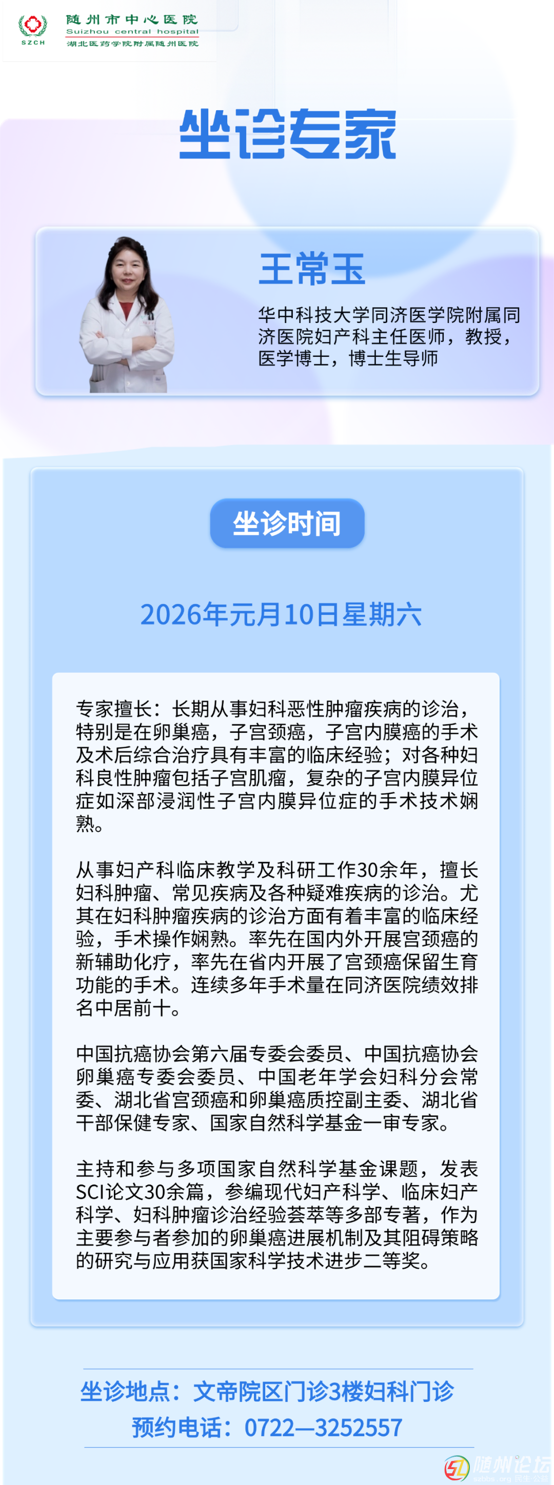 【名醫(yī)坐診】本周六,武漢同濟(jì)醫(yī)院婦產(chǎn)科王常玉教授坐診隨州市中心醫(yī)院!